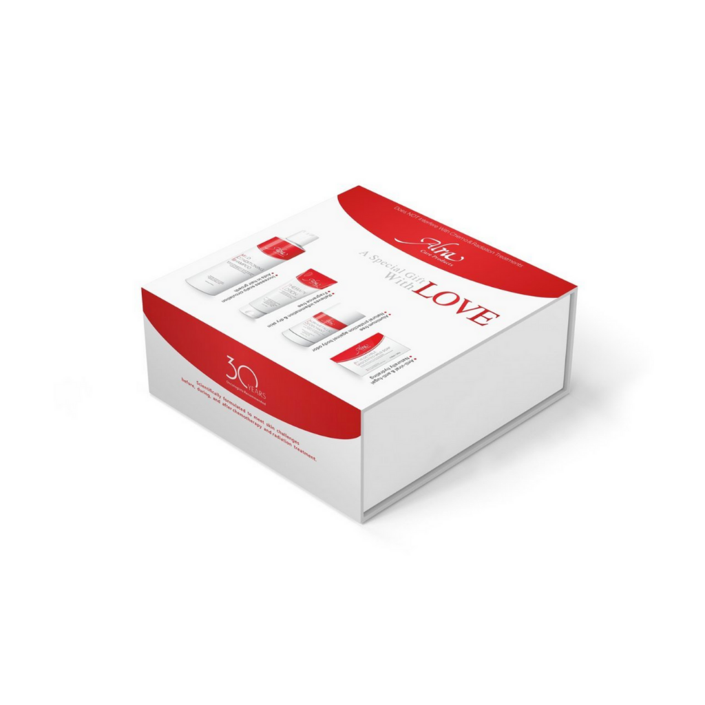 It is a set of four effective full-size skincare products to pamper your loved one – Alra Therapy Lotion, Alra Mild Conditioning Shampoo, Alra Non-metallic Deodorant, and Alra All Vegetable Unscented Mild Soap. These products are non-toxic and made from natural ingredients.