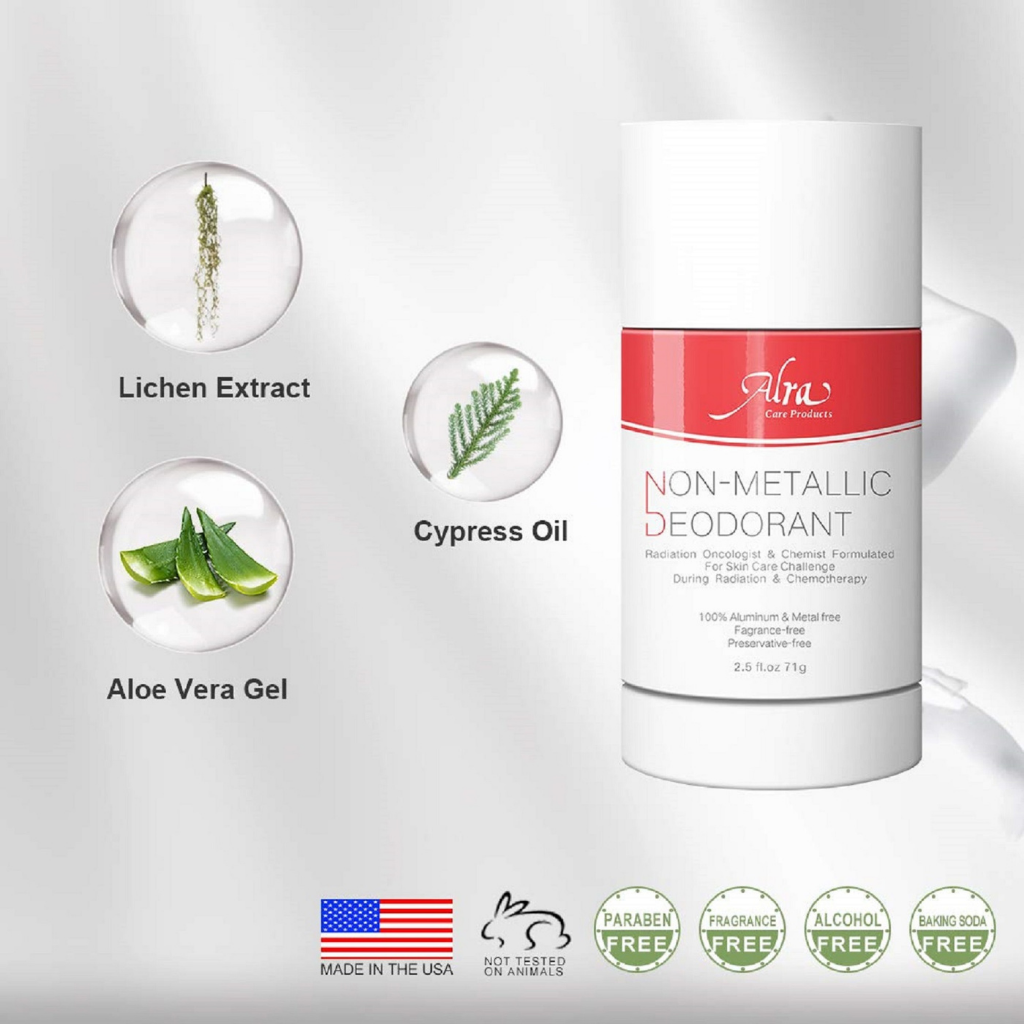 - Alra Non-Metallic Deodorant (2.5oz) - Aluminum-free, preservative/paraben-free, artificial fragrance-free. This unisex deodorant has a mild fragrance of sage, cypress, and other anti-bacterial botanical extracts. Apply after shower for best results.