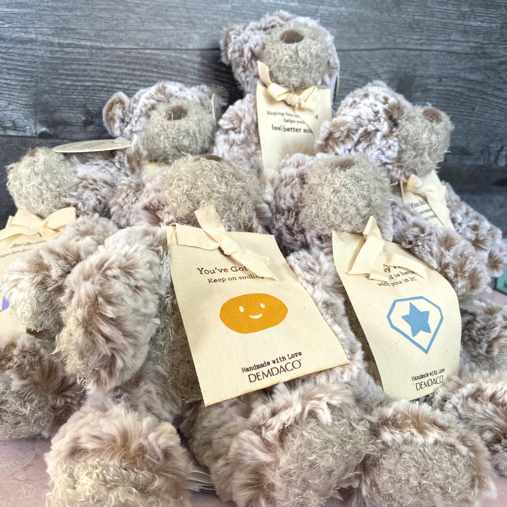 Big things truly come in small packages, and the Demdaco Mini Giving Bear is exactly that! This soft and furry side-kick is the most endearing because it comes with a message of faith. Standing 8.5" inches tall, this fluffy Mini Giving Bear is veiled in a soft feather-like plush material so fuzzy, it seemingly hugs you right back. This Teddy Bear comes prepared for any occasion or circumstance of life to warm the heart and brighten the day. Mini Giving Bear is an expert in cuddles, affection, and providing comfort. This Mini Giving Bear also comes with a special bookmark hang tag exclaiming one of seven blessing messages.