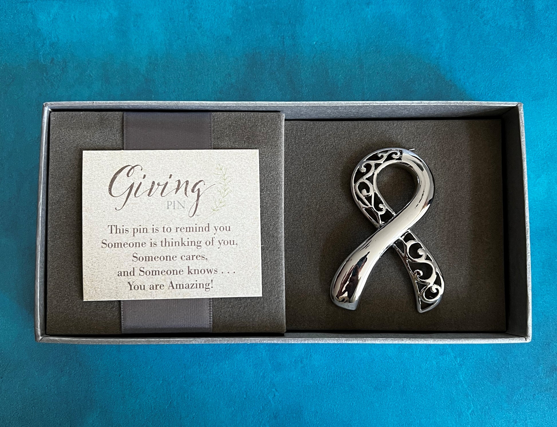 The Silver Ribbon Giving Pin is an endearing way to let someone know you are thinking of them, someone cares and knows they are amazing!