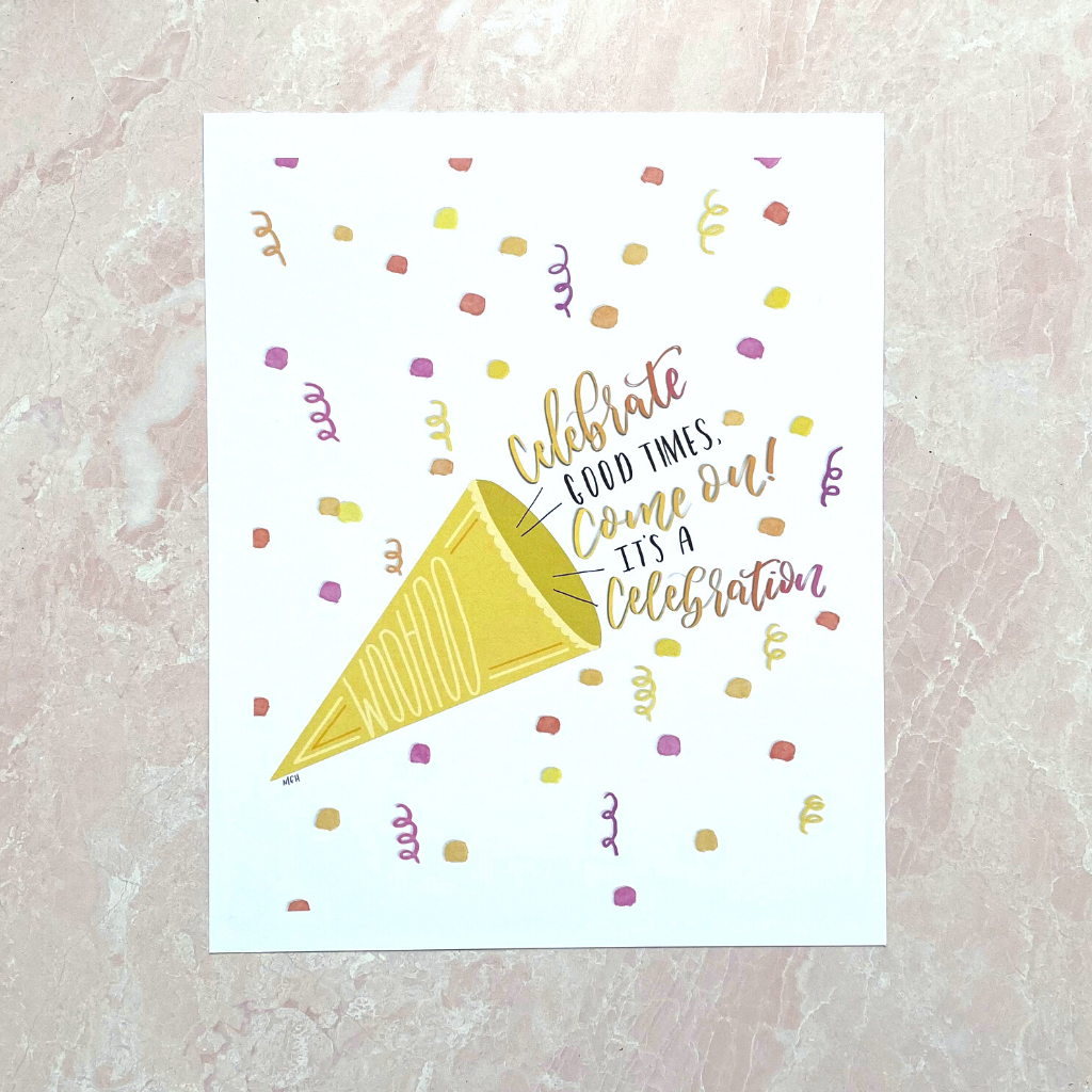 Celebrate every milestone... finished chemo? NED? A year cancer free? Every victory deserves a celebration, and here is a frame-able reminder! Comes in 5 x 7 or 8 x 10. Artwork by Madeline Harwell of Inspired Inks.