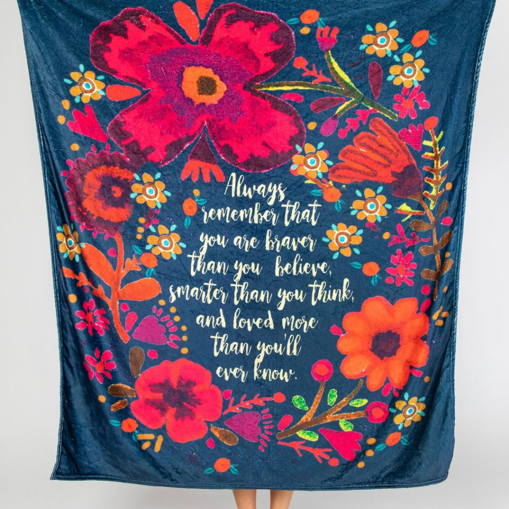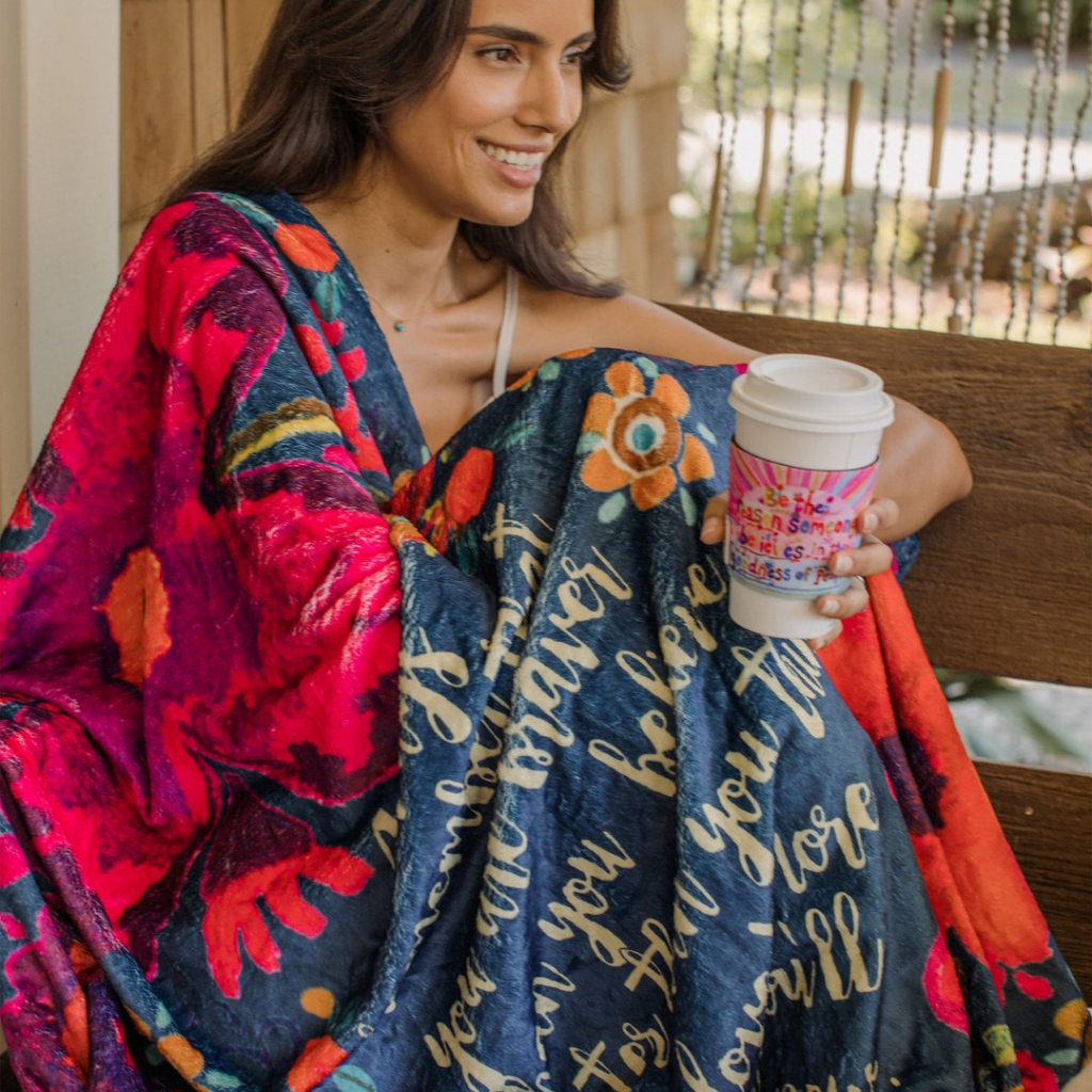 Blanket or Tapestry?! It's both! This Tapestry Blanket is made from the softest material and features bright artwork and an inspirational sentiment with a vintage watercolor look! It’s perfect for snuggling up with a good book, taking to chemo treatment or even just watching your favorite movie on the couch! It looks so cute hung on the wall in a bedroom, living room or even as a workstation backdrop to brighten up your space!
