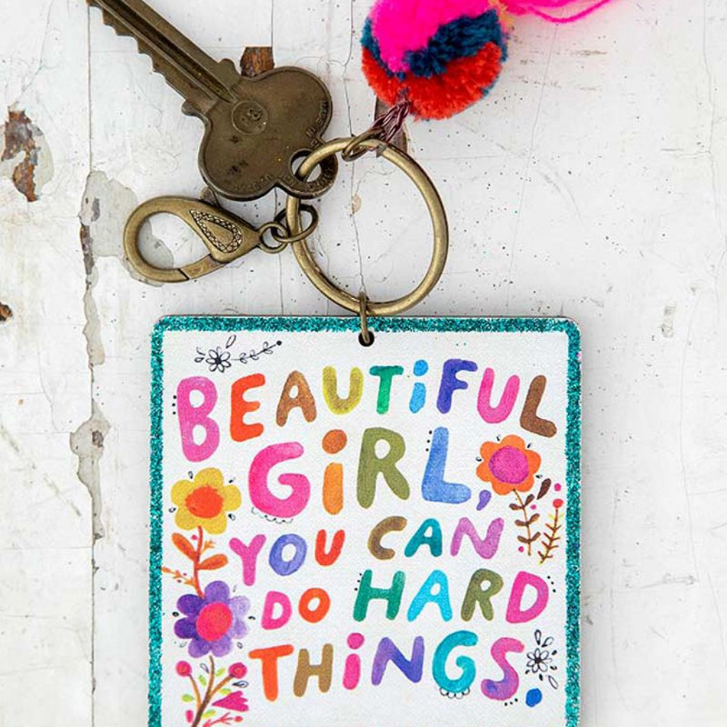 Carry a dash of boho-inspired wisdom wherever you go with this super-cute Chirp Keychain from Natural Life! Featuring a glittering border, an inspirational written sentiment, and even a fluffy pom pom tassel, this is one keychain that won't bore you or your keys.